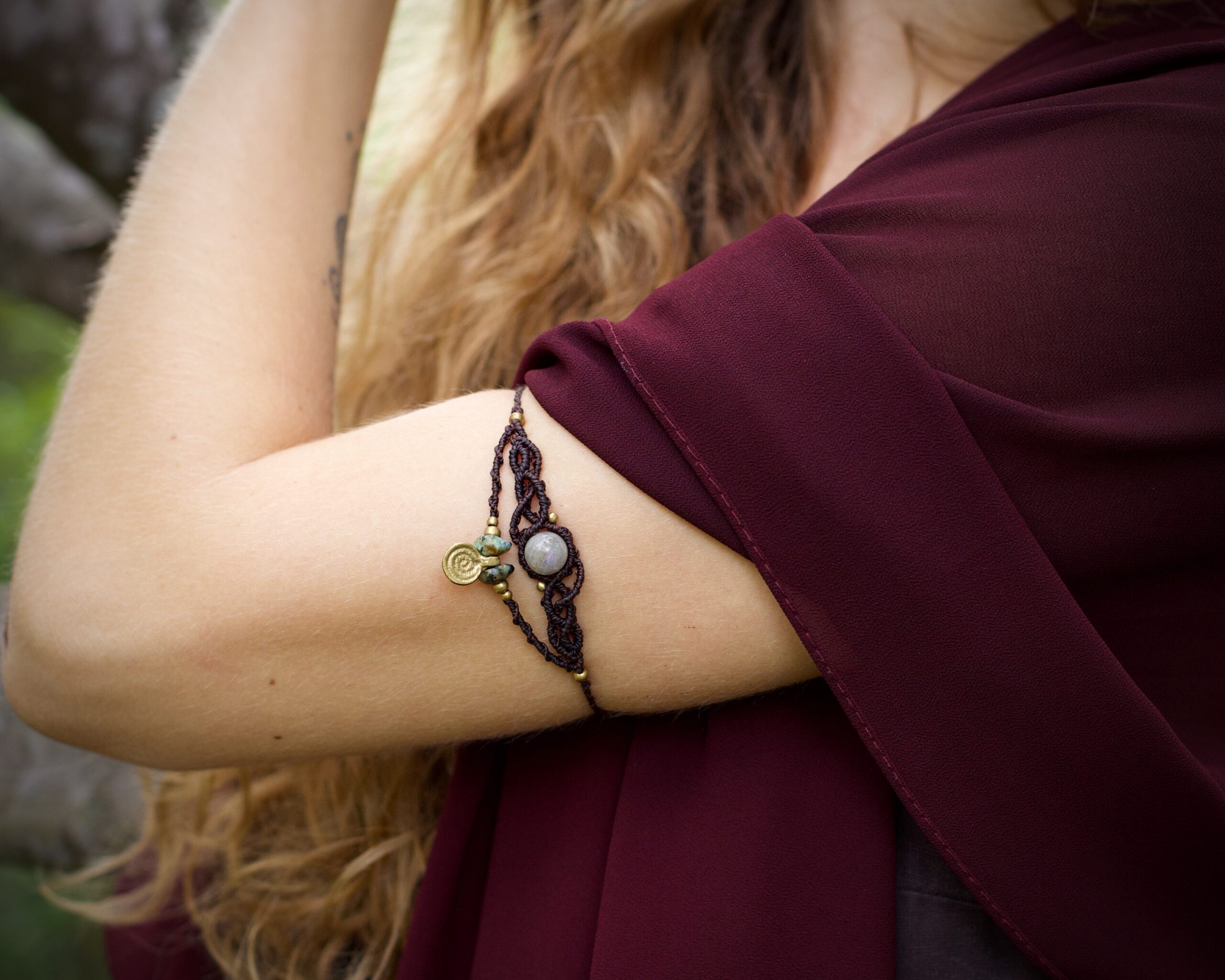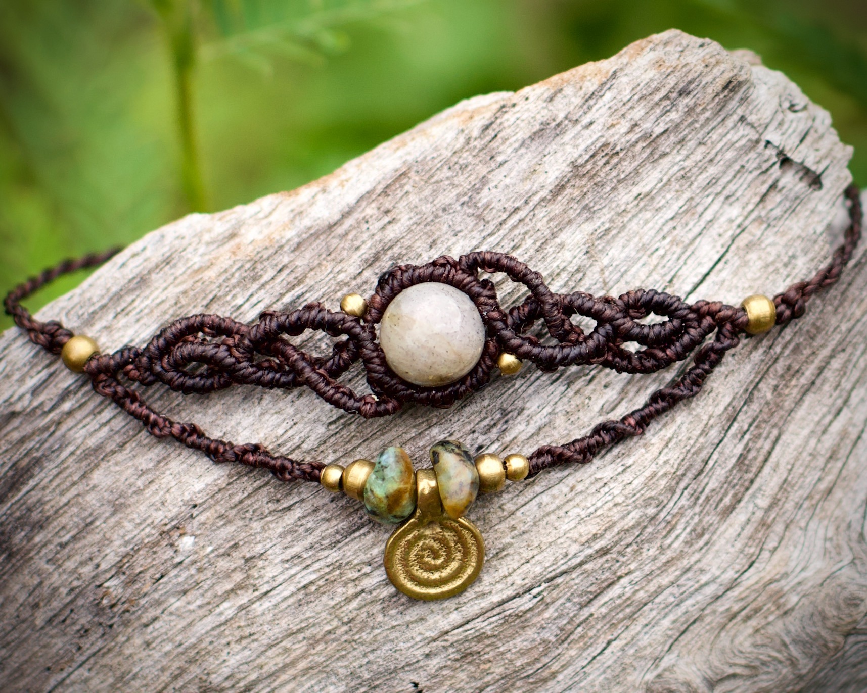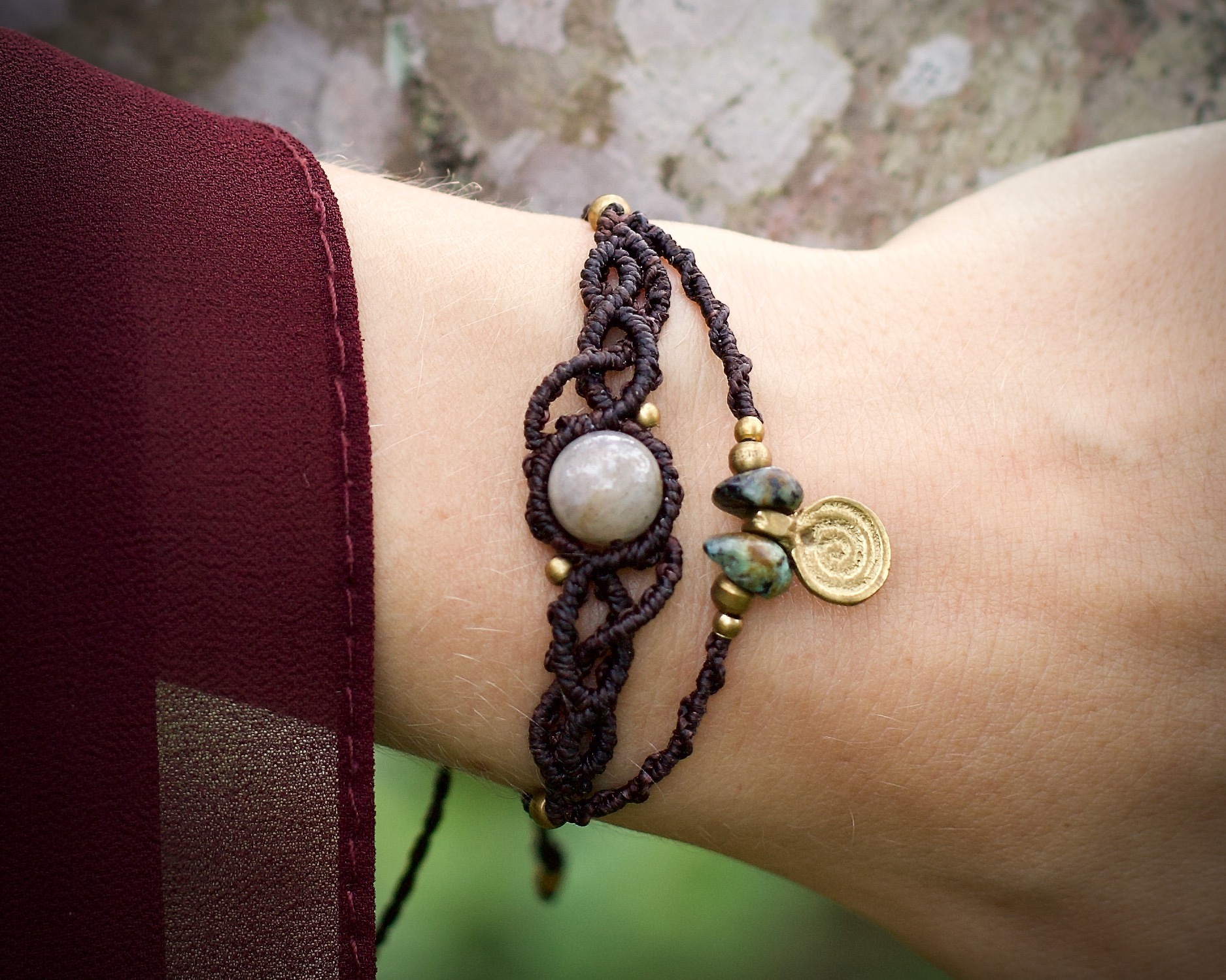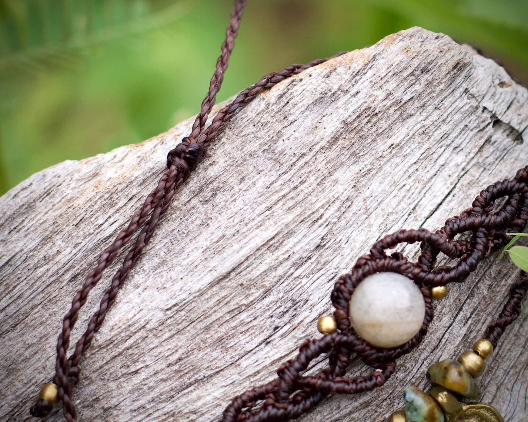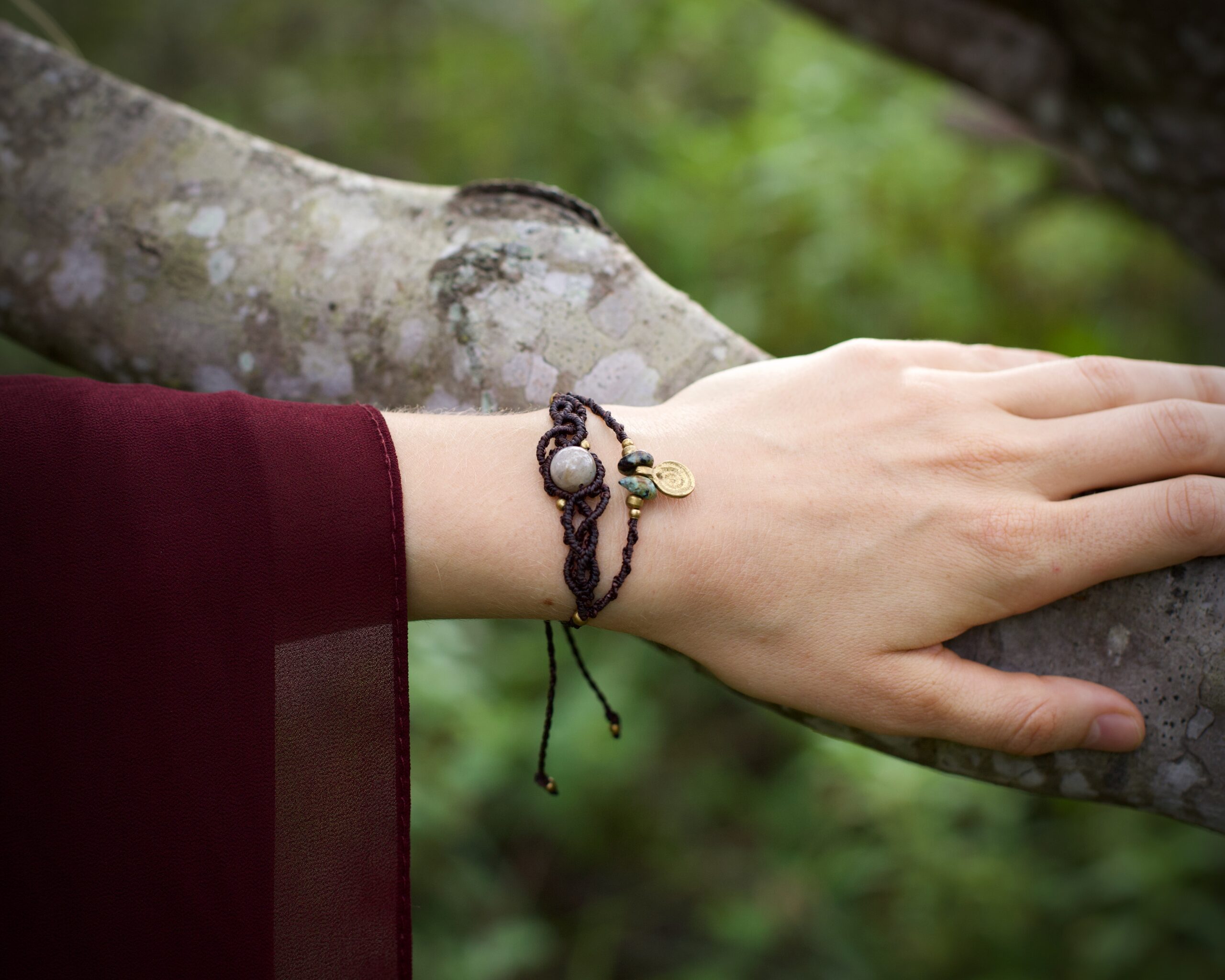 For my macrame jewelry I use high quality waxed strings from brasilian brand Linhasita, which are very durable and resistant. With proper maintenance the jewelry will keep its original shape and color for years. It’s also light and very comfortable to wear.