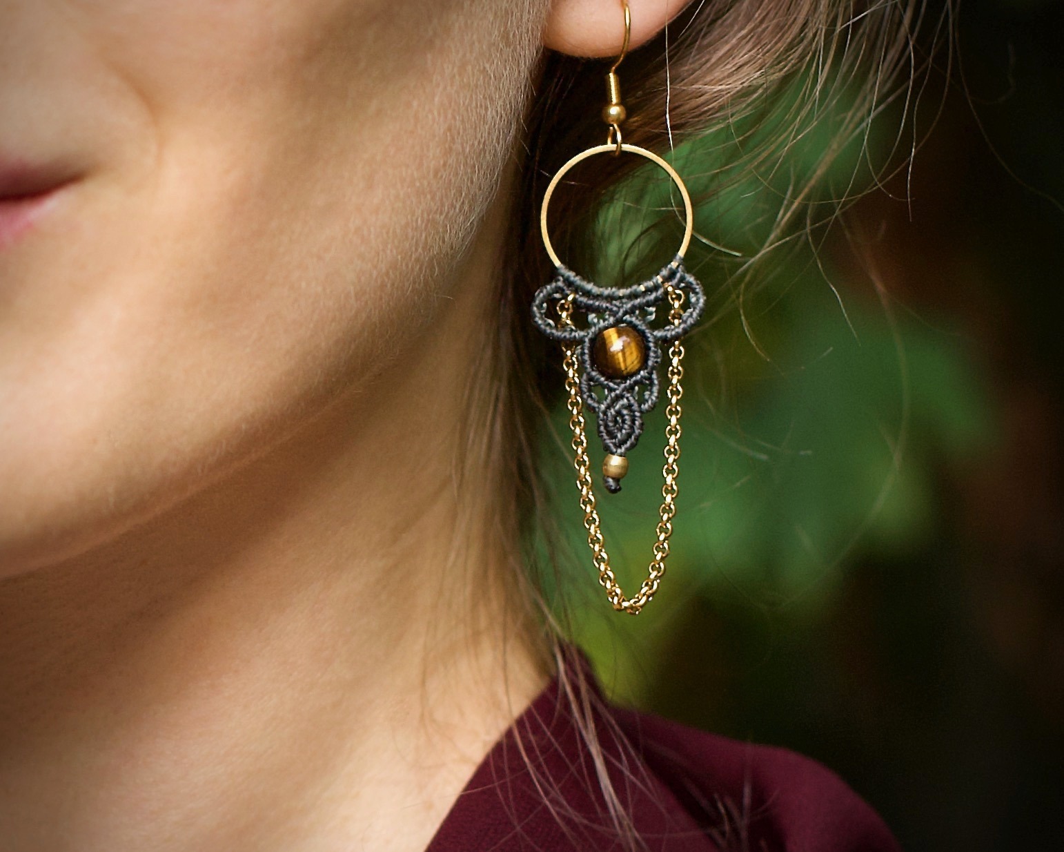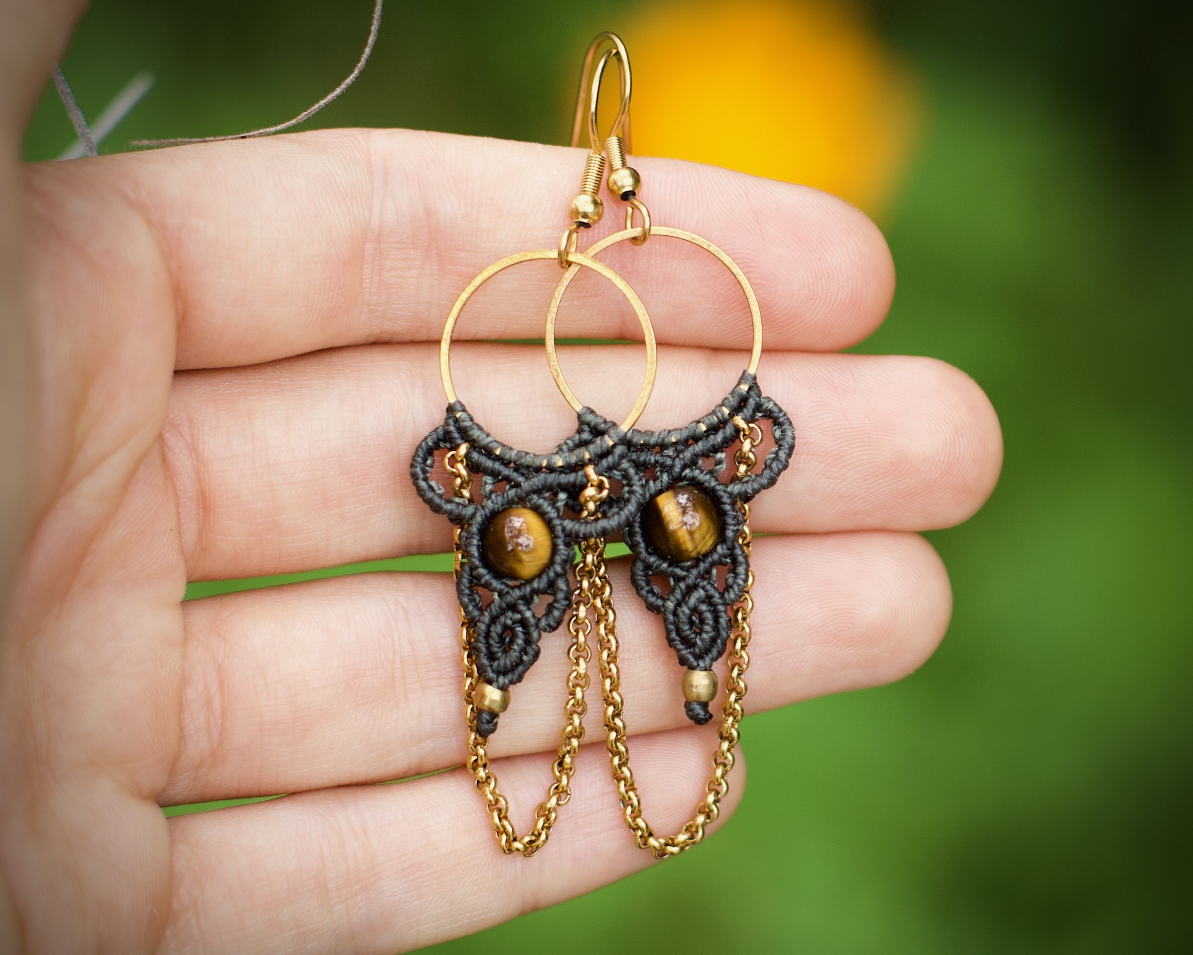 For my macrame jewelry I use high quality waxed strings from brasilian brand Linhasita, which are very durable and resistant. With proper maintenance the jewelry will keep its original shape and color for years. It’s also light and very comfortable to wear.