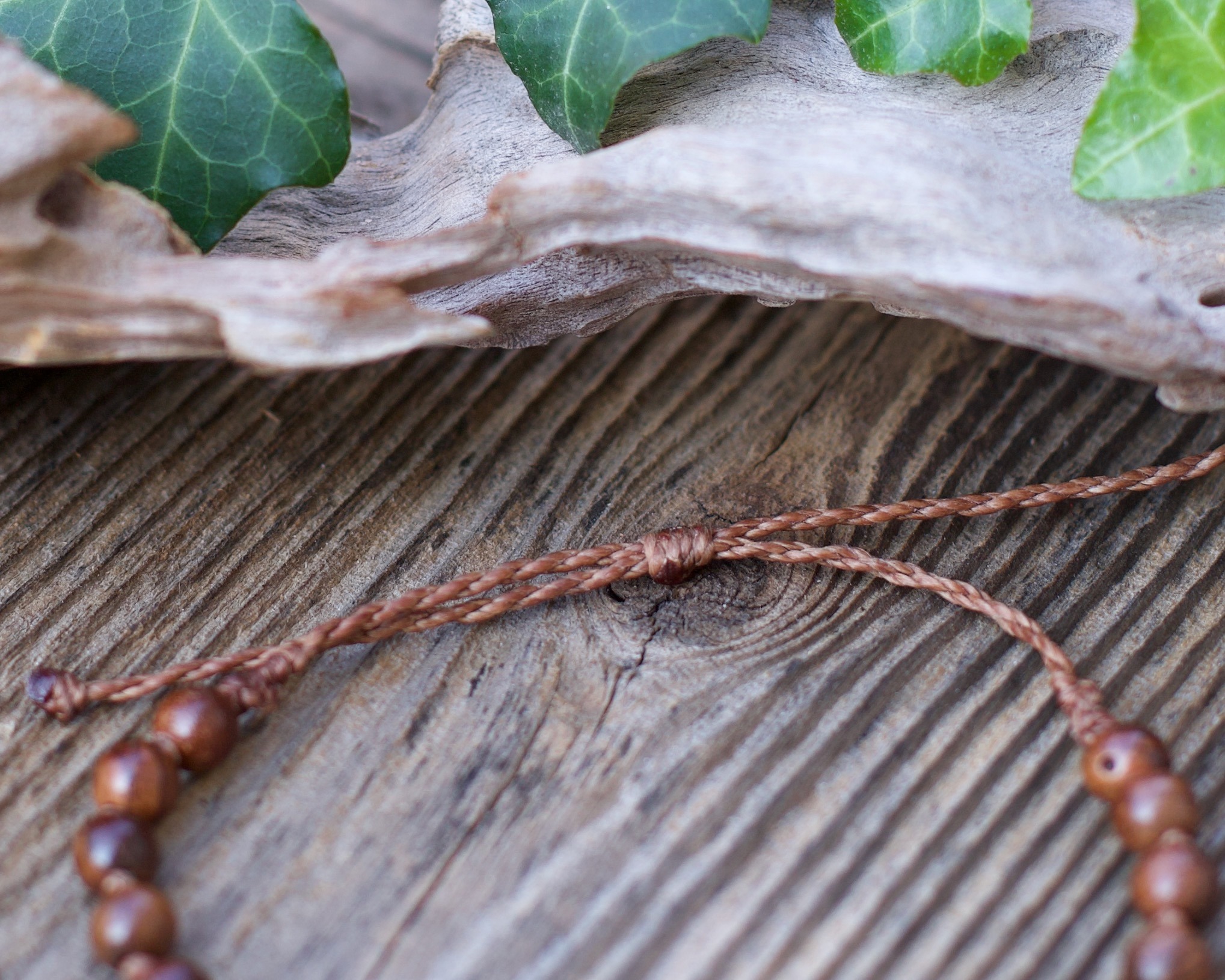 For my macrame jewelry I use high quality waxed strings from brasilian brand Linhasita, which are very durable and resistant. With proper maintenance the jewelry will keep its original shape and color for years. It’s also light and very comfortable to wear.